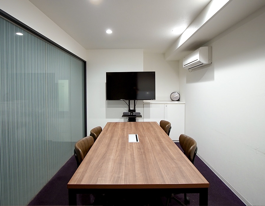 個室スペースにには便利な最新WEB会議システムと大型モニターを完備。
